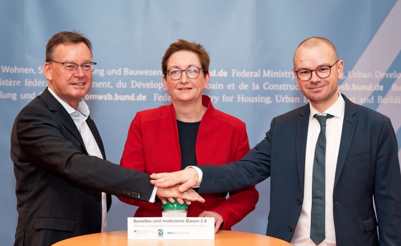 Gemeinsam haben das Bundesbauministerium, der Spitzenverband der Wohnungswirtschaft GdW und der Hauptverband der Deutschen Bauindustrie ein neues europaweites Ausschreibungsverfahren für zukunftsweisende Konzepte des seriellen und modularen Wohnungsbaus gestartet. Ziel ist es, bis Herbst 2023 eine neue Rahmenvereinbarung „Serielles und modulares Bauen 2.0“ zu schaffen. Bieter und Bietergemeinschaften aus Bauplanung und -ausführung können sich ab sofort bis zum 10. April 2023 um 12.00 Uhr in einem ersten Schritt um die Teilnahme am Verfahren bewerben. Anschließend startet die zweite Phase, in der die ausgewählten Bietergemeinschaften bis Herbst ihre Wohnungsbau-Angebote einreichen können.