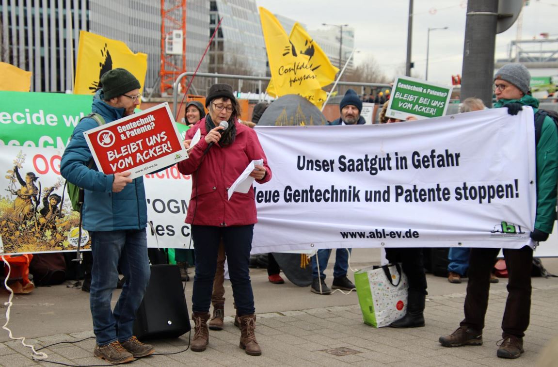 Während im EU-Parlament debattiert wird, formiert sich draußen der Widerstand: Zahlreiche Landwirt*innen, Verbände-Vertreter*innen und Verbraucher*innen protestieren gegen die Deregulierung des Gentechnik-Rechts. Das Aktionsbündnis gentechnikfreie Landwirtschaft überreichte gegen Mittag an Martin Häusling (MdEP Die Grünen), Terry Reintke (MdEP Die Grünen) und Maria Noichl (MdEP SPD) eine auch von Bioland unterstützte WeAct Petition „Kennzeichnung und Regulierung aller Gentechnik-Pflanzen erhalten!“. Mehr als 92.000 Personen haben die Petition bislang unterzeichnet.