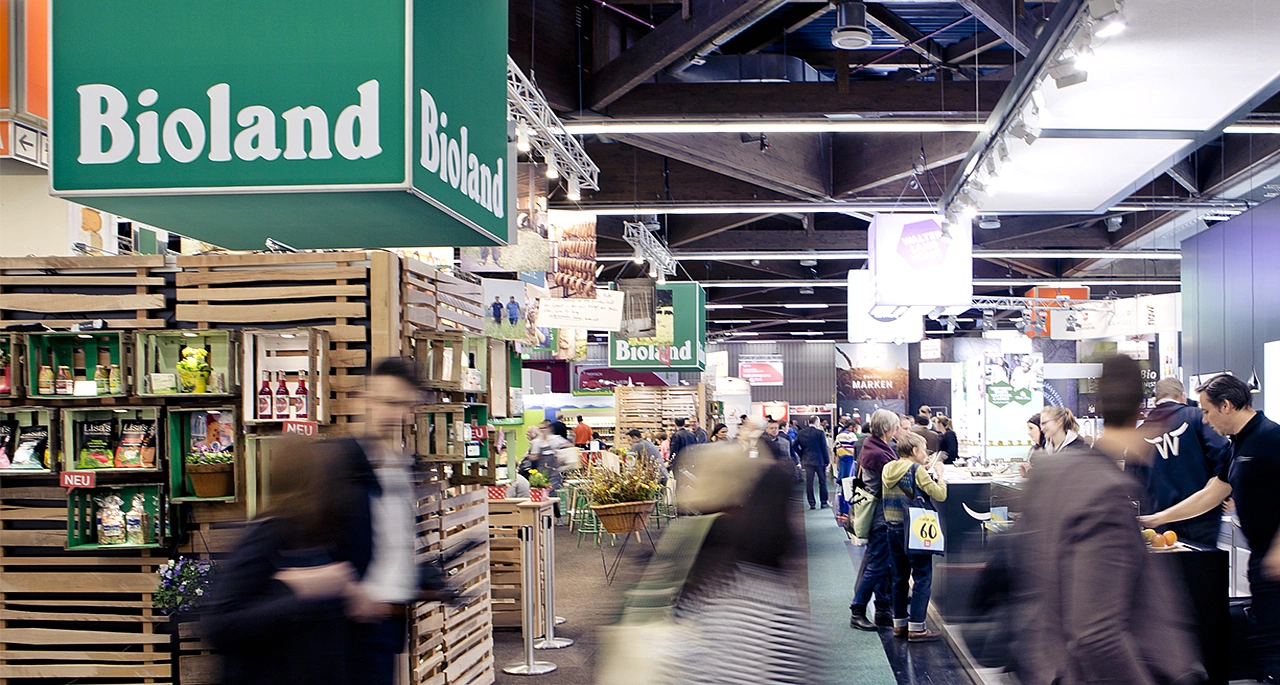 In Halle 7 präsentiert Bioland sich mit zahlreichen Partner-Unternehmen und thematischen Schwerpunkten zum Außer-Haus-Markt, der Gentechnik und dem Artenschutz.