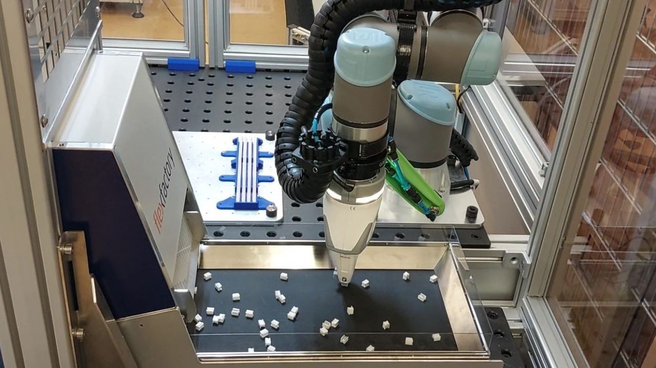 Was jetzt mit mehr Automatisierung möglich wird, zeigt das Fraunhofer IPA auf der diesjährigen productronica. Das Team rund um das Ausgründungsprojekt „intRAC“ (intelligent Robotic Assembly Cell) bietet eine schlüsselfertige Gesamtlösung aus effizienter Software und modularer Hardware, mit der auch das selbst für Menschen anspruchsvolle Einführen von Kabeln in Stecker automatisiert umsetzbar ist. Durch standardisierte Prozessmodule lassen sich eine Vielzahl an Produkten und Prozessen abbilden und damit selbst kleine und mittlere Stückzahlen wirtschaftlich automatisieren.
